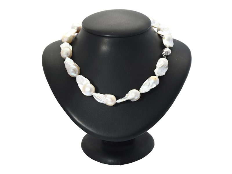 PEARL NECKLACE, cultured freshwater pearls, baroque approx. 15,0 mm, clasp in silver, length 44 cm, weight approx. 77,0 g.
