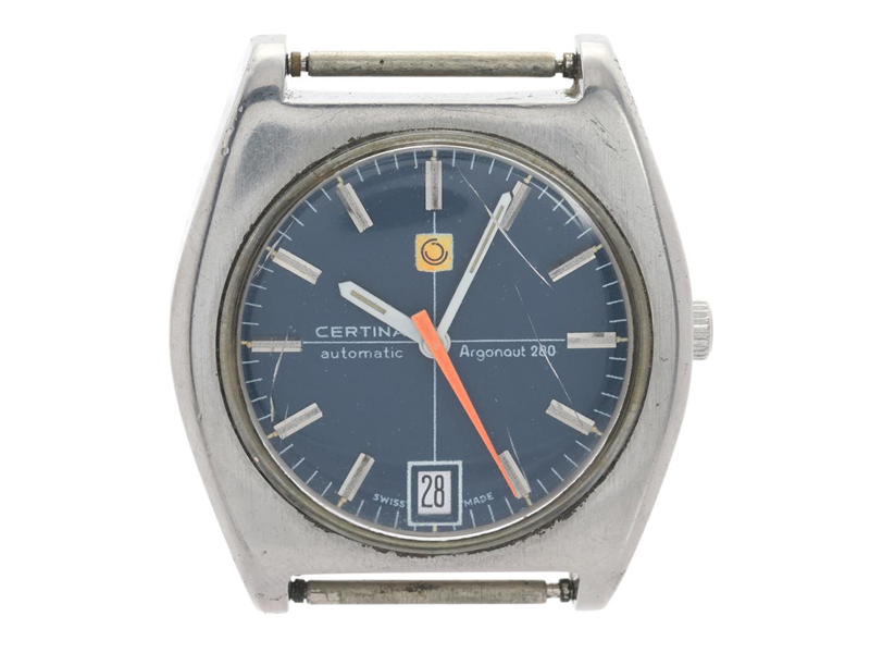 CERTINA, Argonaut 280, Cal 25-651, Serial no. 9666750, Case no. 5801.280, men´s wristwatch, 37 mm, steel, self winding, plastic crystal (damaged), date, damaged dial, defect, approx. 1979.