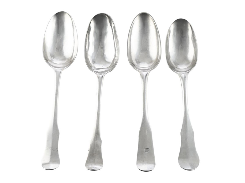 SPOONS, Silver, 4 pcs, antique, 18th century´s second half, Jonas Elg Västerås 1797, Nils Tornberg Landskrona 1786, Carl Fahlberg Uppsala 1773 mästarranka, Abraham Lundberg Stockholm 1773, weight 218,2 g