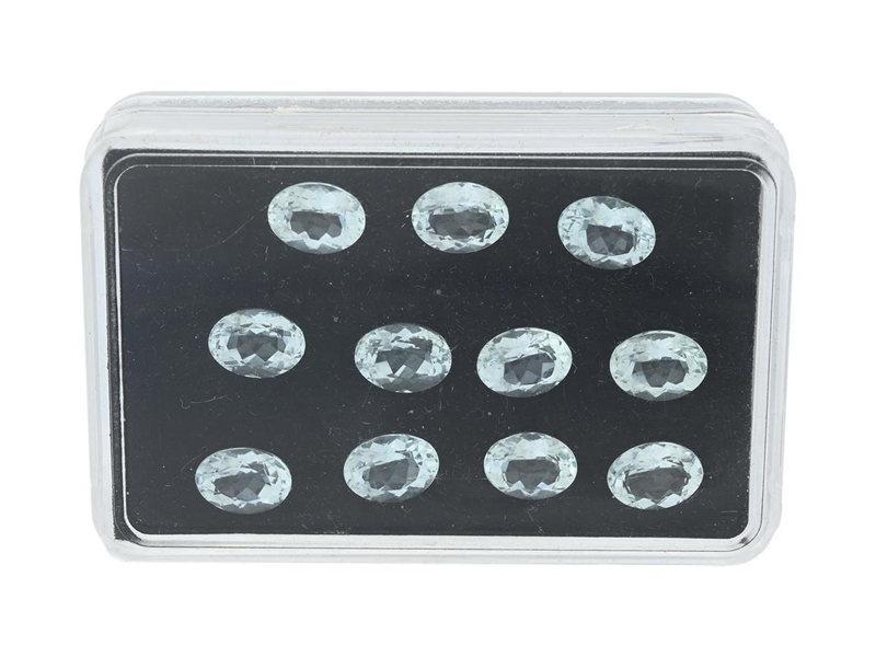 AQUAMARINES, 11 items, oval cut, 12,63 ctw, near colourless for light blue, mixed quality.
