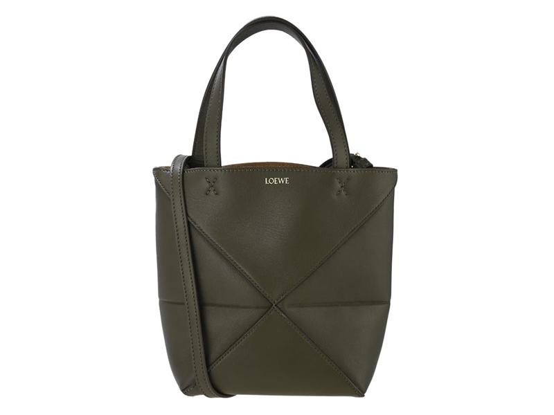 LOEWE, BAG, Mini Puzzle Fold Tote, green calfskin, gold-tone hardware, 24x21x9 cm, detachable shoulder strap, care booklet, dustbag. Very Good Condition.