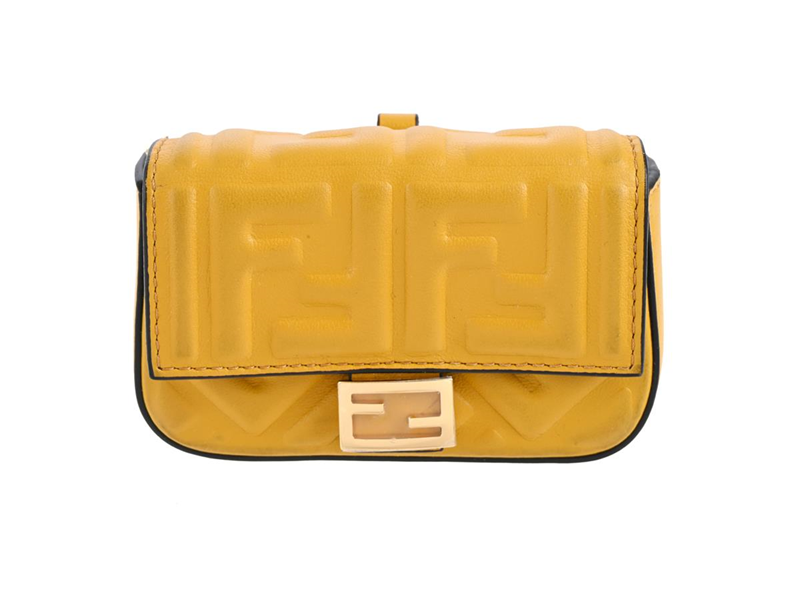 BAG, FENDI, Mini Baugette, FF embossed, yellow nappa leather, gold-tone hardware, 10,5x7x2 cm, dustbag, case.