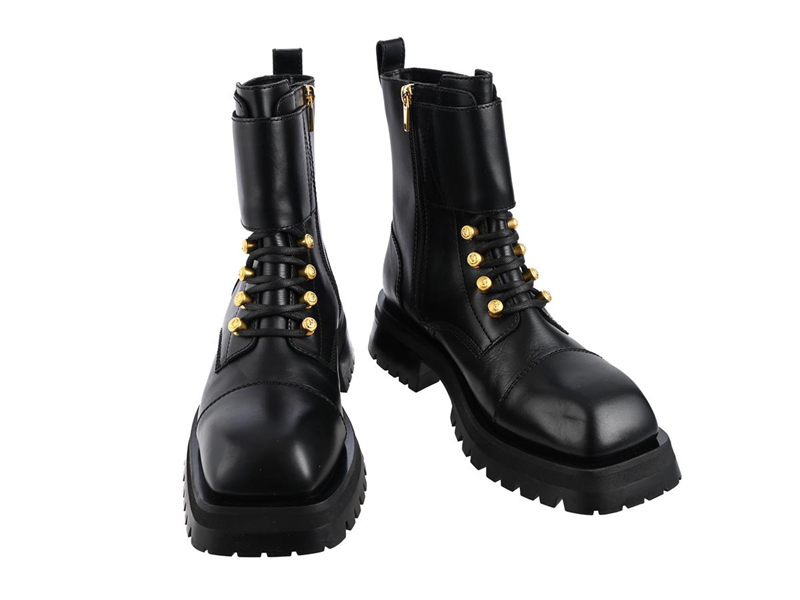 SHOES, BALMAIN, Ranger Boot Army, black calfskin, gold-tone hardware, size 40, sole 4,5 cm, dustbag, box.
