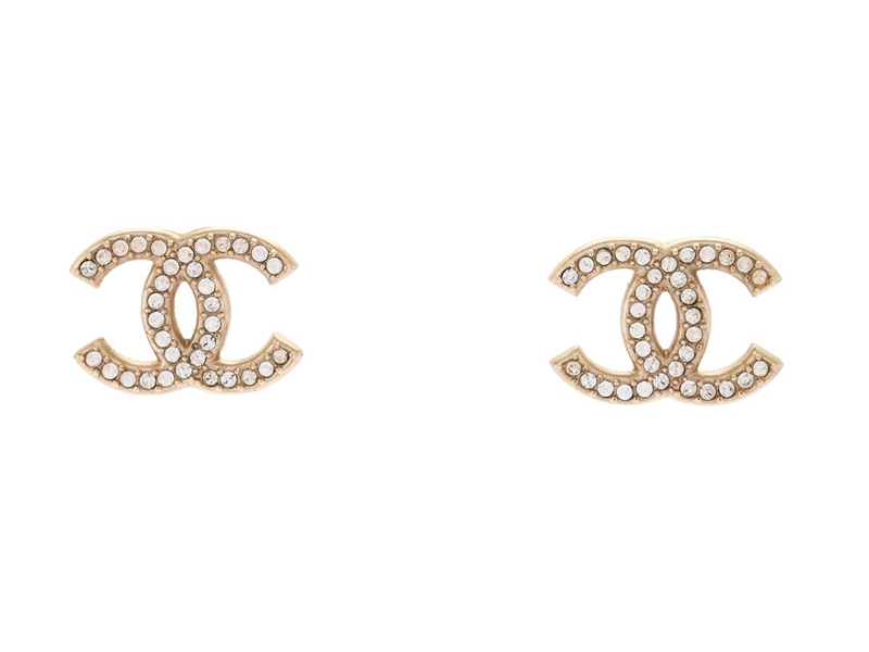 EARRINGS, CHANEL, Logo CC, yellow metal, white stones, pushback, vikt4,5 g, marked A15 CC V, year 2015-2016, receipt from 2016, case.