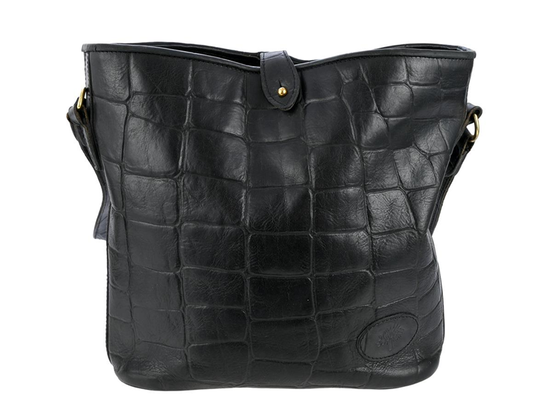 BAG, MULBERRY, bucket bag, black embossed leather, gold-tone hardware, 24x24x10 cm, signs of wear.