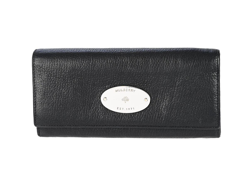WALLET, MULBERRY, black leather, silver-tone hardware, 18,5x9x1 cm, coin, bank-note, card, dustbag, signs of wear.