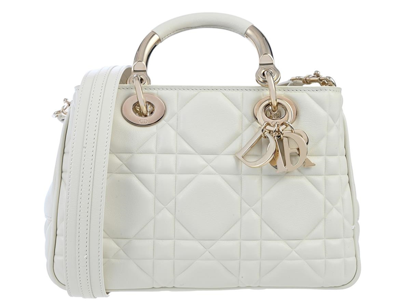 DIOR, BAG, Lady 95.22 Limited edition, white quilted leather, gold-tone hardware, 25x16x10 cm, detachable shoulder strap, care booklet, certificate, dustbag. Excellent Condition.