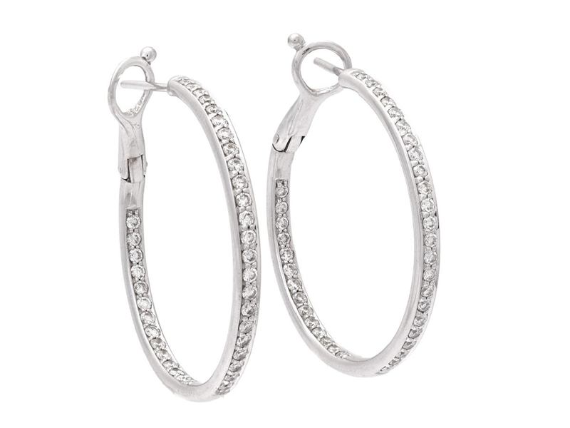 HOOPS, 18K white gold, with brilliant cut diamonds 0,80 ctw, approx. TW-Cr/VS, height 30 mm, weight 8,7 g,