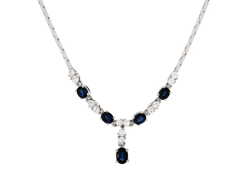 NECKLACE, 18K white gold, 5 oval cut sapphires approx. 2,50 ctv,12 brilliant cut diamonds approx. 0,96 ctw, approx. TW-W/VVS-VS, length 42 cm, weight 13,9 g.
