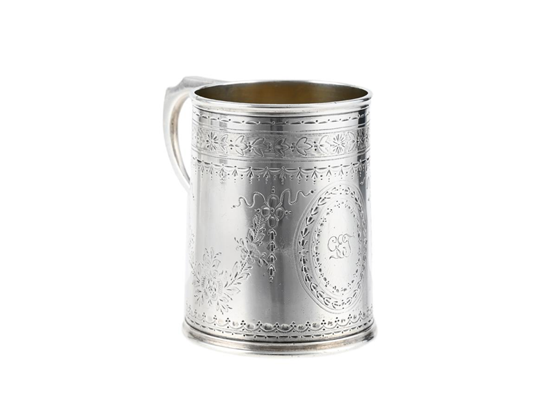 CUP, with handle, sterling silver, John, Edward, Walter & John Barnard (Barnard & Sons Ltd), London 1875, height 8,5 cm, weight 141,5 g.