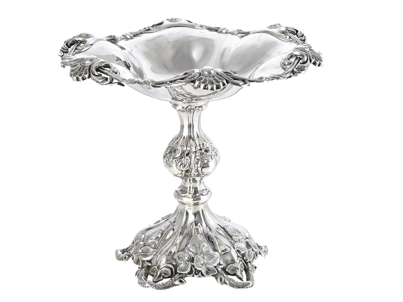 GUSTAF MÖLLENBORG FERON, Bowl on stand, silver, decor of akantus, partly pierced stand, Stockholm 1867, height 20 cm, diameter 23 cm weight 390,5 g.