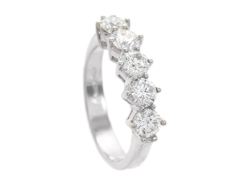RING, 18K white gold, 5 brilliant cut diamonds approx. 1,47 ctw, approx. TW-TCr/VS-SI, size 17,25 mm, weight 5,0 g.