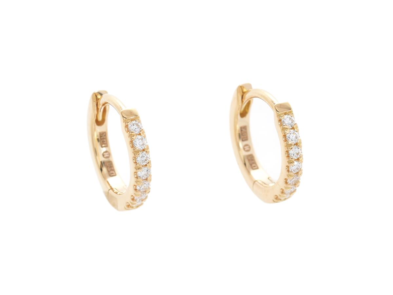 HOOP EARRINGS, 18K gold, 14 brilliant cut diamonds approx. 0,12 ctw, approx. TW-W/VS, pushback, diameter 11,0 mm, weight 1,8 g.