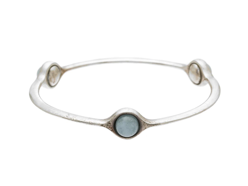 GEORG JENSEN, bangle, Sphere, no 473, sterling silver, aquamarine beads, inner measurement 6 x 6 cm, weight 16,3 g.