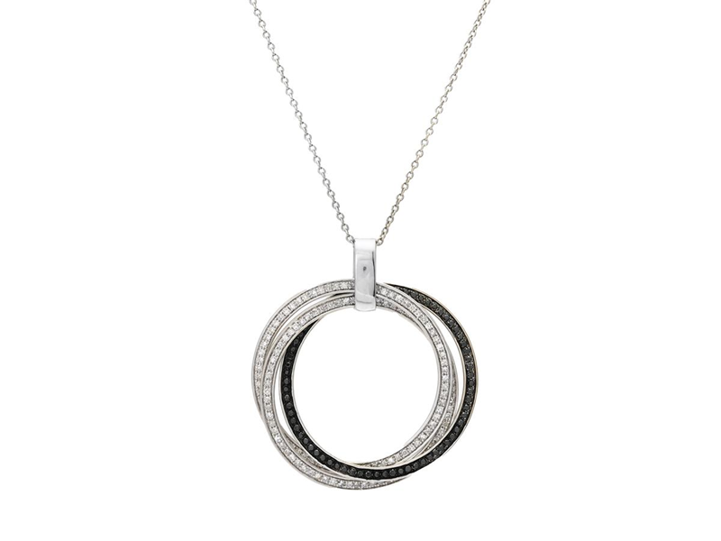 PENDANT WITH CHAIN, 14K white gold, black and white diamonds approx. 0,50 ctw, length 45 cm, weight 5,3 g.