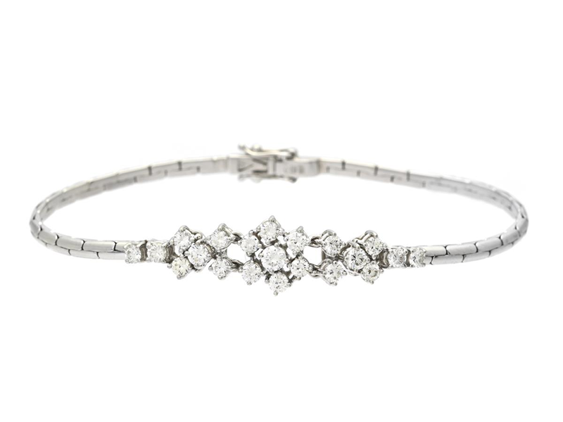 STRÖMDAHLS, bracelet, 18K white gold, 21 brilliant cut diamonds 1,43 ctw according to engraving, approx. TW-Tcr/VS-SI, length 18 cm, weight 12,6 g, one stone is somewhat loose in its setting.
