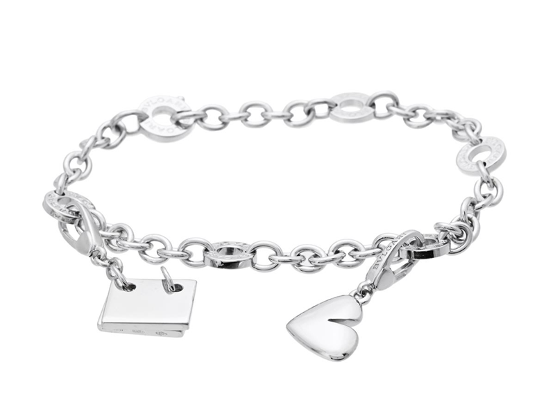 BVLGARI, bracelet, Bvlgari Bvlgari, 18K white gold, 2 pcs charms, adjustable length up to 19,5 cm, weight 24,0 g, case.