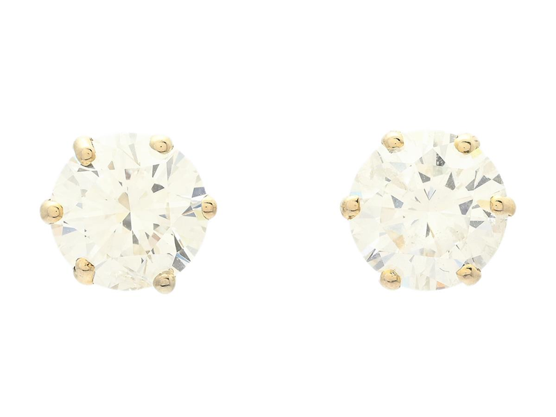 SOLITAIRE EARRINGS, 18K white gold, brilliant cut diamonds approx. 2,00 ctw, approx. TW-(G-H)/P1, pushback, weight 1,8 g, one the diamond with small notch, spare facet, one push back in 14K white gold.