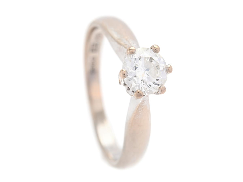 SOLITAIRE RING, 18K white gold, brilliant cut diamond 0,50 ct, TW(G)/VS2, GIA laseringskription 5196305000, size 15 mm, weight 3,2 g.