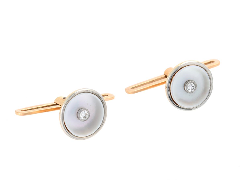 SHIRTBUTTONS, 18K gold, mother-of-pearl, brilliant cut diamonds, diameter 9 mm, weight 2,3 g.