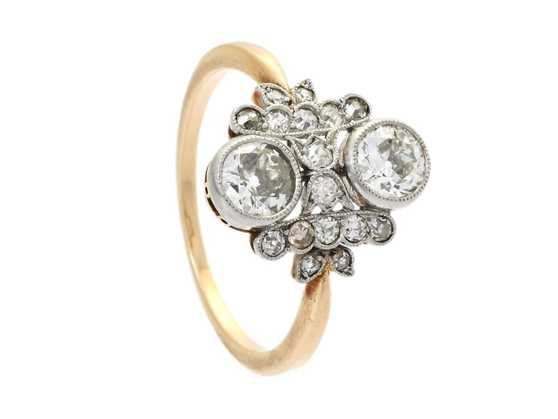 RING, platina/14K gold, old- and single cut diamonds approx. 0,70 ctw, approx. W-TCa/VS-P, size 16 mm, weight 2,3 g.