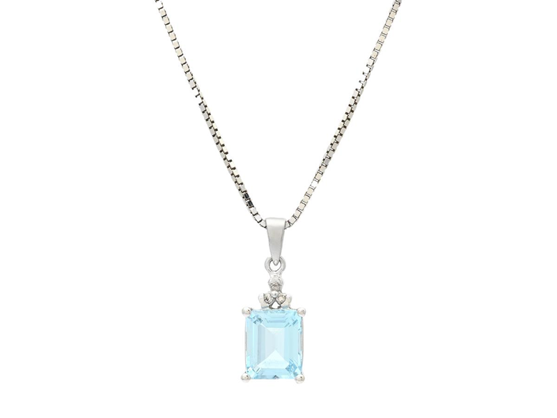 PENDANT, 18K white gold, emerald cut aquamarine approx. 2,5 ct, 3 single cut diamonds approx. 0,03 ctw, the pendant´s height 22 mm, length 40 cm, weight 7,1 g.