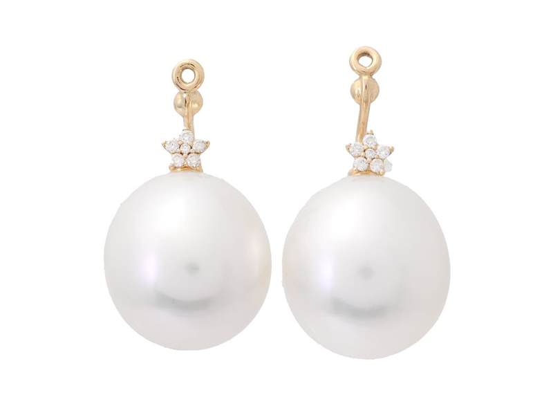 OLE LYNGGAARD, attachments, Shooting stars earring pendants, 18K gold, freshwater pearls, brilliant cut diamonds 0,07 ctw, height 23 mm, weight 8,9 g, dustbag.