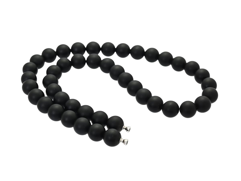 NECKLACE, beads of onyx,ca 10 mm, silver, cap ends fits Ole Lynggaard, length 46 cm, weight 64,6 g.