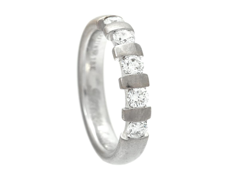 ETERNITY RING, 18K white gold, 5 brilliant cut diamonds approx. 0,50 ctw, approx. TW/VS, Schalins, size 16 mm, weight 6,0 g, engraving, signs of wear, the diamonds are loose in the settings.