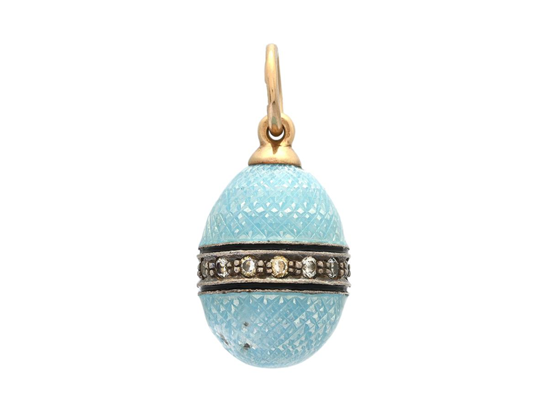 PENDANT, Egg, silver/14k gold, enamel, brilliant cut diamonds approx. 0,20 ctw, Russia, height 25 mm, weight 3,9 g, damages on the enamel.