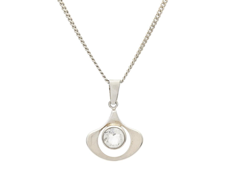 PENDANT WITH CHAIN, sterling silver, rock crystal, Kultaseppä Salovaara, the chain´s length 70 cm, weight 9,8 g,