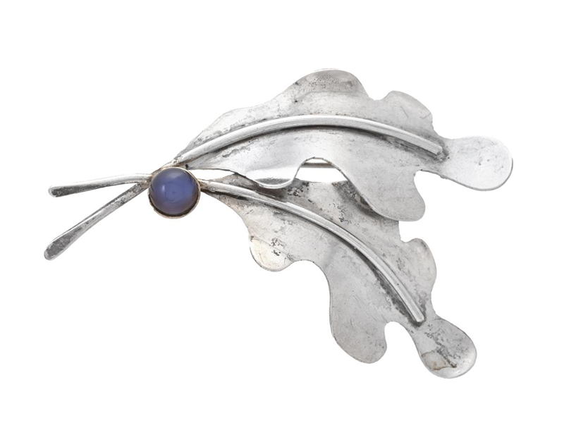 BROOCH, leaf, blue stone, weight 9,1 g,