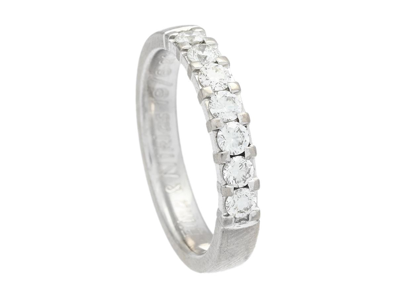 ETERNITY RING, 18K white gold, 7 brilliant cut diamonds approx. 0,42 ctw, TW-W/VS, size 16,75 mm, weight 5,0 g, personal engraving, two stones are damaged.