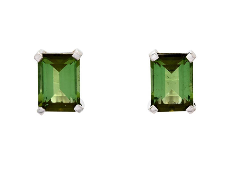 EARRINGS, 18K white gold, emerald cut green tourmalines, pushback, weight 2,6 g.
