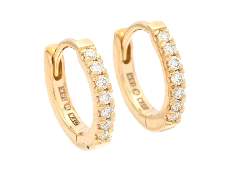 HOOP EARRINGS, 18K gold, 14 brilliant cut diamonds approx. 0,12 ctw, approx. TW-W/VS, pushback, diameter 11,0 mm, weight 1,8 g.