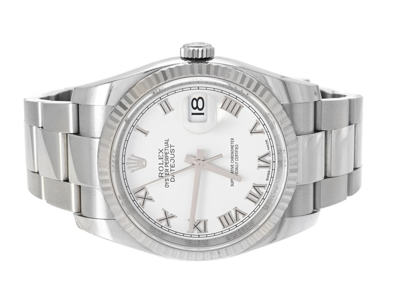 ROLEX, Oyster Perpetual, Datejust, Chronometer, Ref no. 116234, Serial no. M5H53798, Cal 3135, Movement no. 438190P9, Case no. 2080, men´s wristwatch, 36 mm, steel/white gold, self winding, sapphire crystal, date, Oyster bracelet, folding clasp (Easylink), Ref no. 72600A-4WC/G7M+S2Q, length 175 mm, certificate, September 2017, box, paper box.