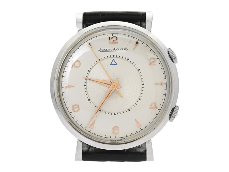 JAEGER-LE COULTRE, Memovox, Cal P489/1, Serial no. 774060, Ref no. 3151, Case nr.559729, men´s wristwatch, 35 mm, steel, manual winding, plastic crystal, alarm, restored dial, damaged dial, leather strap, approx. 1950.