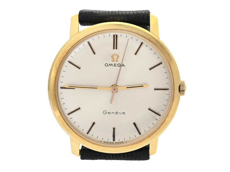 OMEGA, Genève (-Swiss Made-), Cal 601, Serial no. 27002949, Ref no. BA 131.021, Case no. 131.021, men´s wristwatch, 33,5 mm, 18K gold, manual winding, plastic crystal, leather strap, gold plated original buckle, approx. 1968.