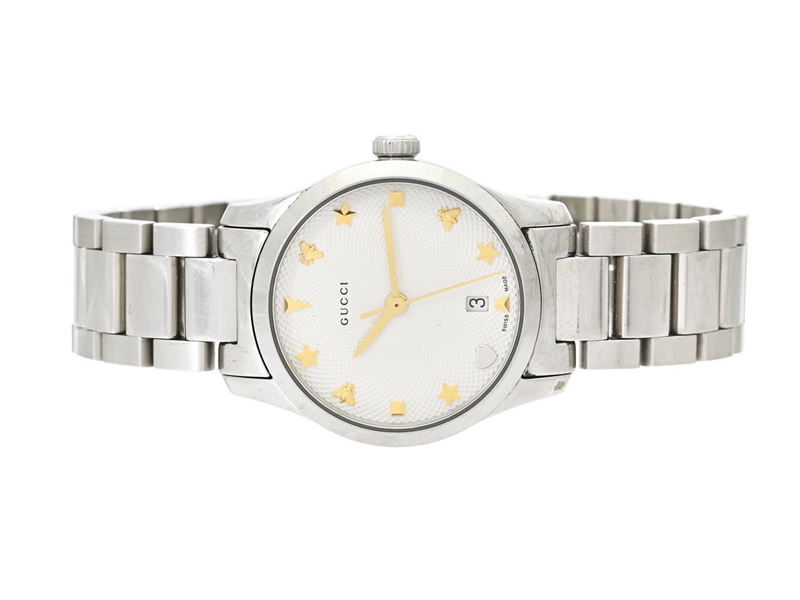 GUCCI, G-Timeless, Serial no. 17580680, Ref no. YA126572A, Case no. 126.5, ladies´ wristwatch, 27 mm, steel, quartz, sapphire crystal, date, original bracelet, folding clasp, approx. 2018, box.