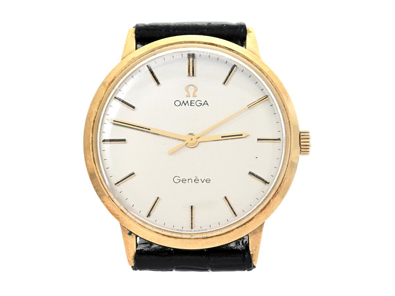 OMEGA, Genève (-Swiss Made-), Cal 601, Serial no. 32625401, Ref no. BD 131.041, Case no. 131.041, men´s wristwatch, 33 mm, 14K gold, manual winding, plastic crystal, engraving, leather strap, approx. 1970.