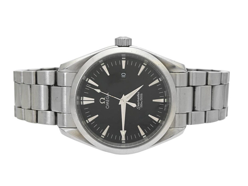 OMEGA, Seamaster (150m/500ft), Aqua Terra, Cal 1538, Serial no. 58256974, PIC no. 2517.50.00, Ref no. ST 396.1113, Case no. 196.1113 (LL), men´s wristwatch, 39,2 mm, steel, quartz, sapphire crystal, date, damaged dial/hands, original bracelet, folding clasp, Ref no. 1574/898, certificate, May 2005, box, paper box.