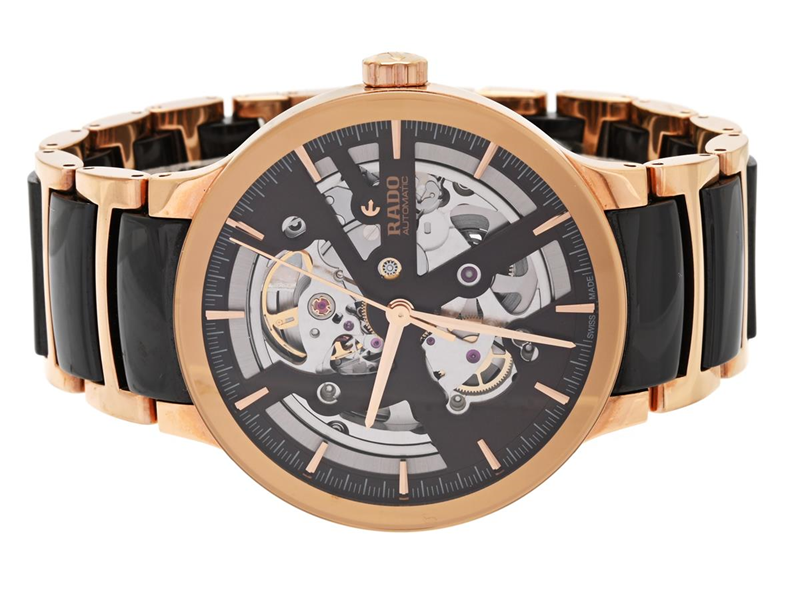 RADO, Centrix Open Heart, Cal ETA C07631, Serial no, 14437636, PIC no. R30181312, Ref no. 734.0181.3.031, Case no. 734.0181.3 men´s wristwatch, 38 mm, high-tech ceramics/doublé, self winding, sapphire crystal, skeletonized dial, display caseback, integrated original bracelet, folding clasp (titanium), Ref no. 05018/09, length 160 mm, approx. 2015.