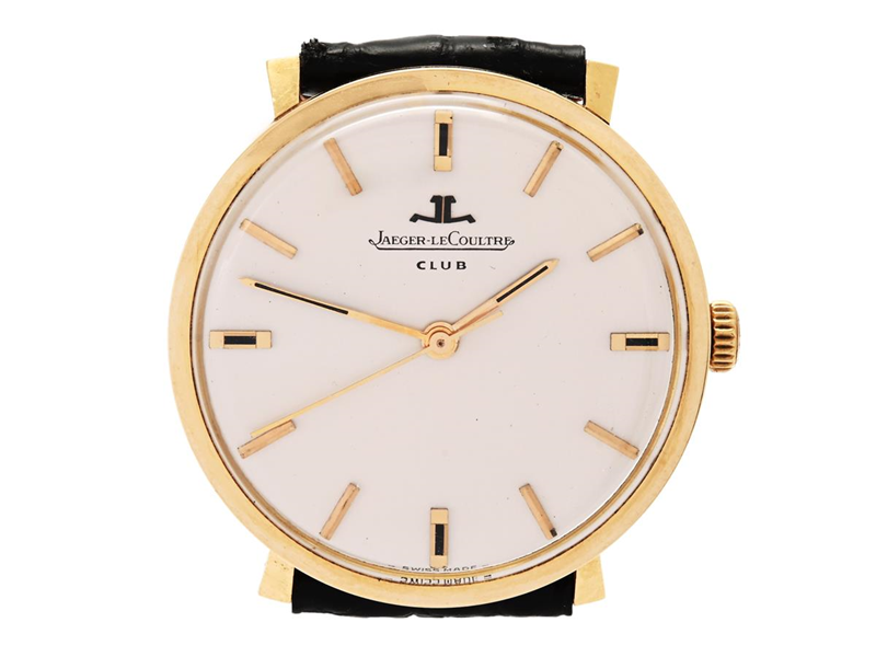 JAEGER-LECOULTRE, Club, Cal AS 1900/01, Case no. 1150035/ 200501, men´s wristwatch, 34 mm, 18K gold, manual winding, plastic crystal, engraving, leather strap, approx. 1970.