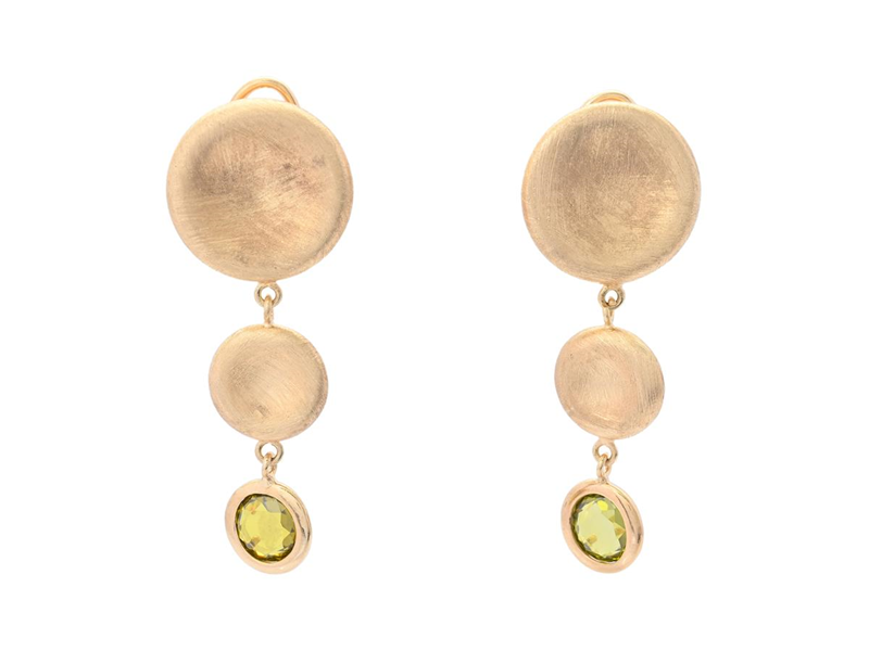 MARCELLO PANE, earrings, gilt sterling silver, green stones, length approx. 5,5 cm, pushback, weight 12,1 g.