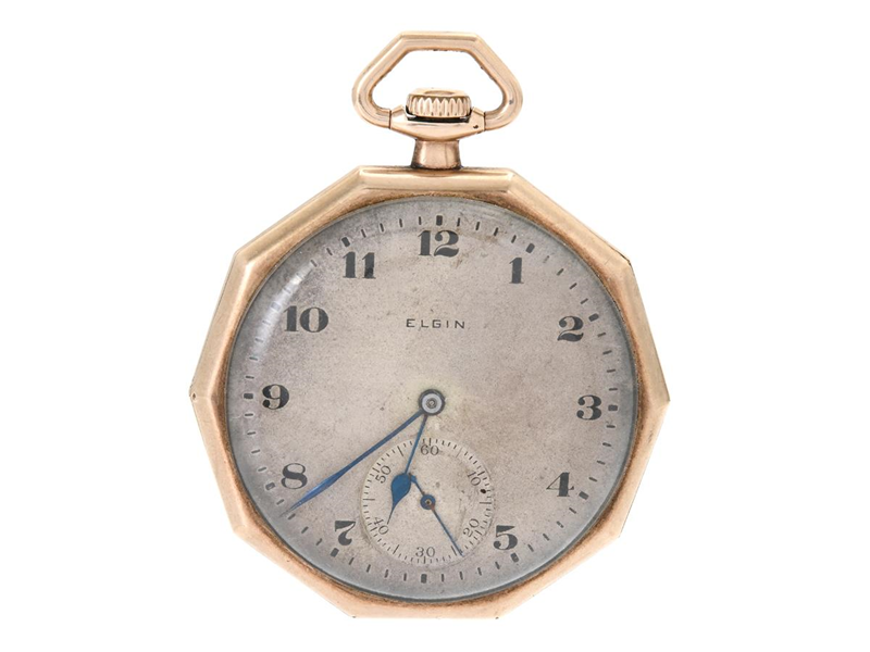 ELGIN, pocket watch, 45 mm, Cal 392 (17 jewels, 12 size), Serial no. 16311901, Case no. 3222642, gold plated, lever escapement, damaged dial, defect setting mechanism, approx. 1912.