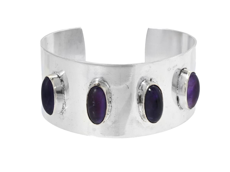 BANGLE, silver, amethysts, inner measurement 6,5 cm, width 3,1 cm, weight 58,9 g.