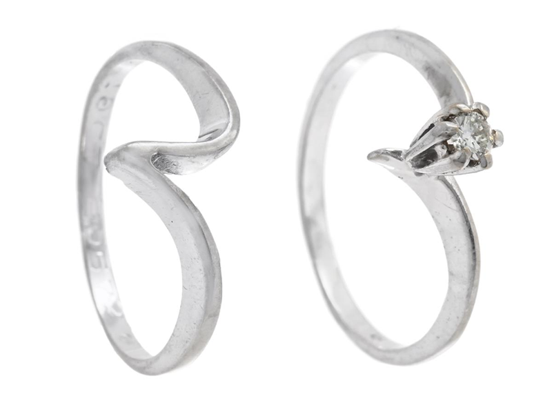 RINGS, 2 pcs, 18K white gold, brilliant cut diamond approx. 0,07 ct, approx. W/SI, size 16,75 mm, weight 3,8 g.