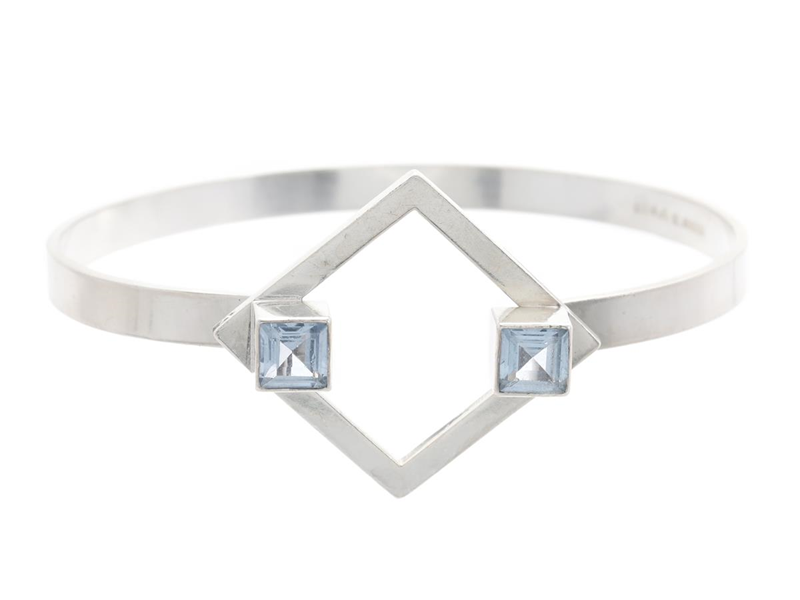 BANGLE, silver, blue stones with notch, Malmö 1968, measurements 6,4 cm x 5,8 cm, weight 17,7 g.
