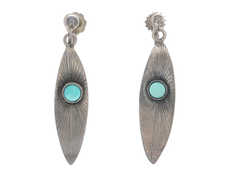 EARRINGS, silver, turquoise, Ackert Tötterman, Gävle 1955, screwbacks, length approx. 37,0 mm, weight 4,0 g.