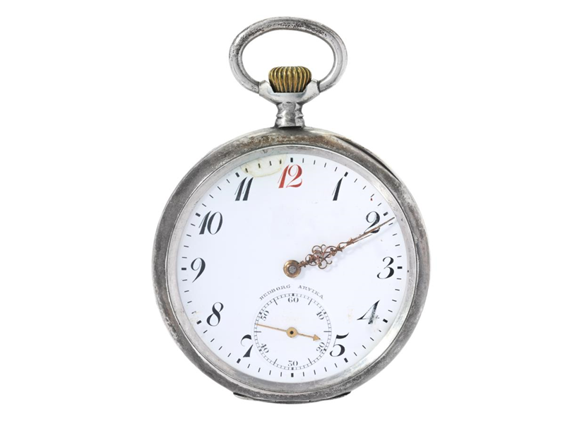 OMEGA, pocket watch, "Red twelve", 50 mm, Serial no. 4496928, Case no. 7012881, silver (800), lever escapement, dial not signed, damaged dial, dents, approx. 1925.